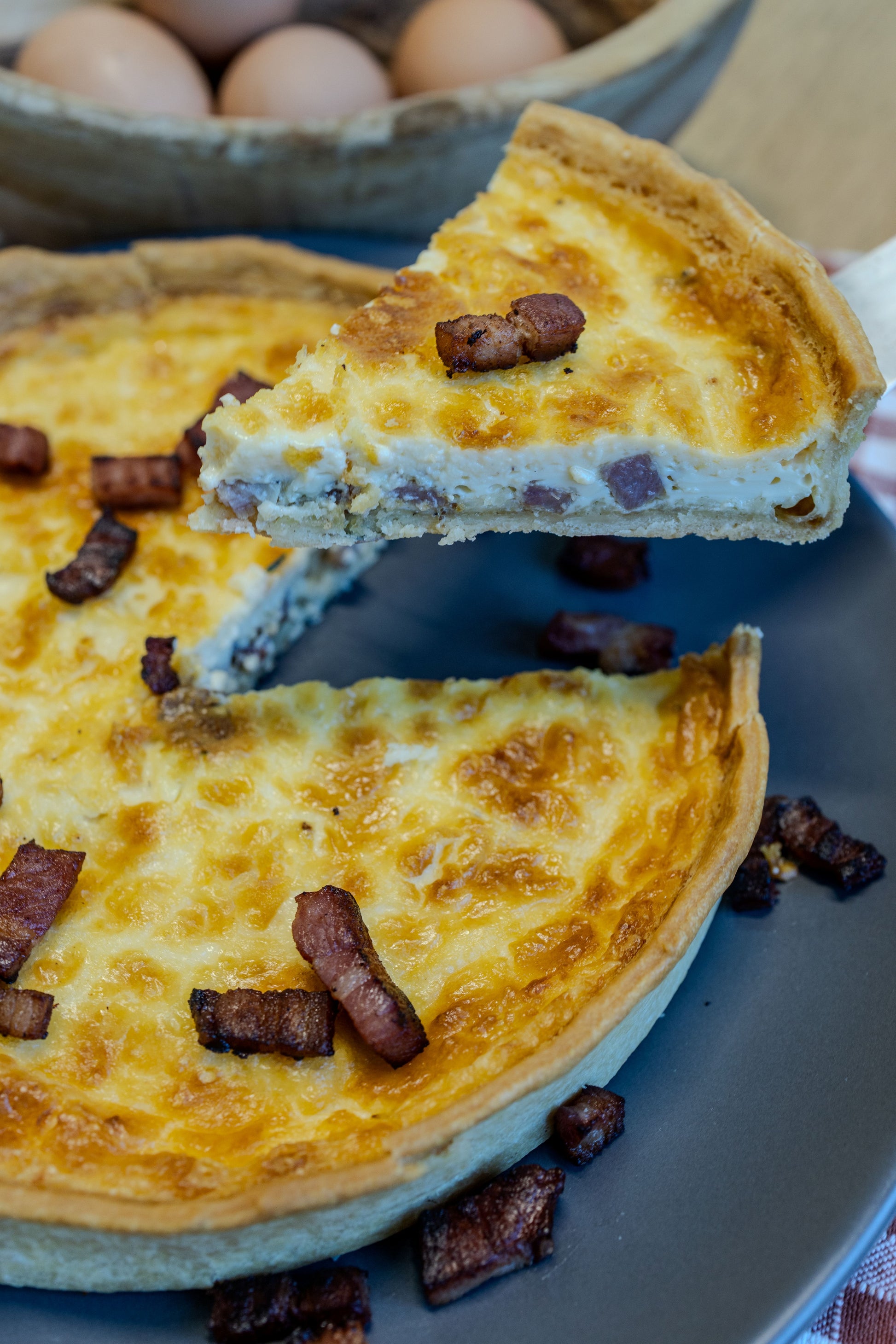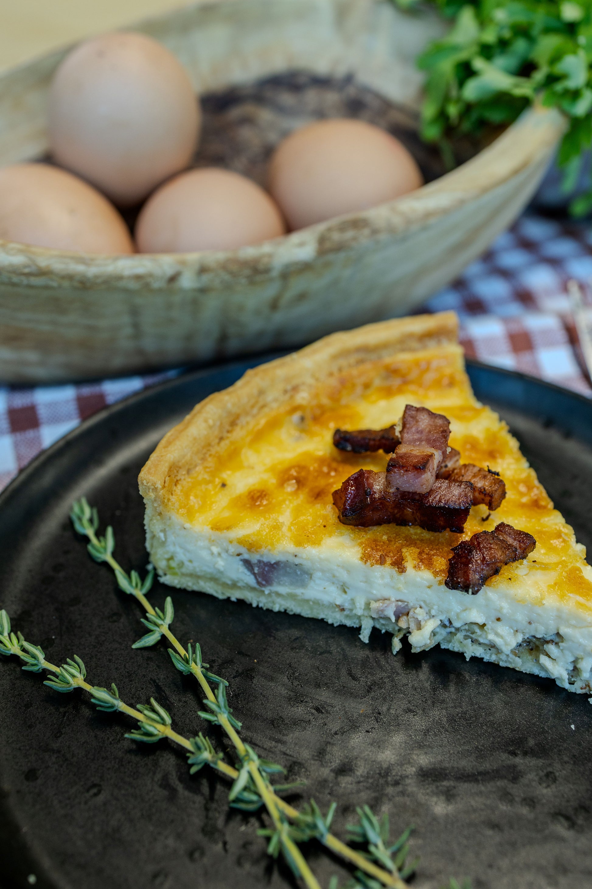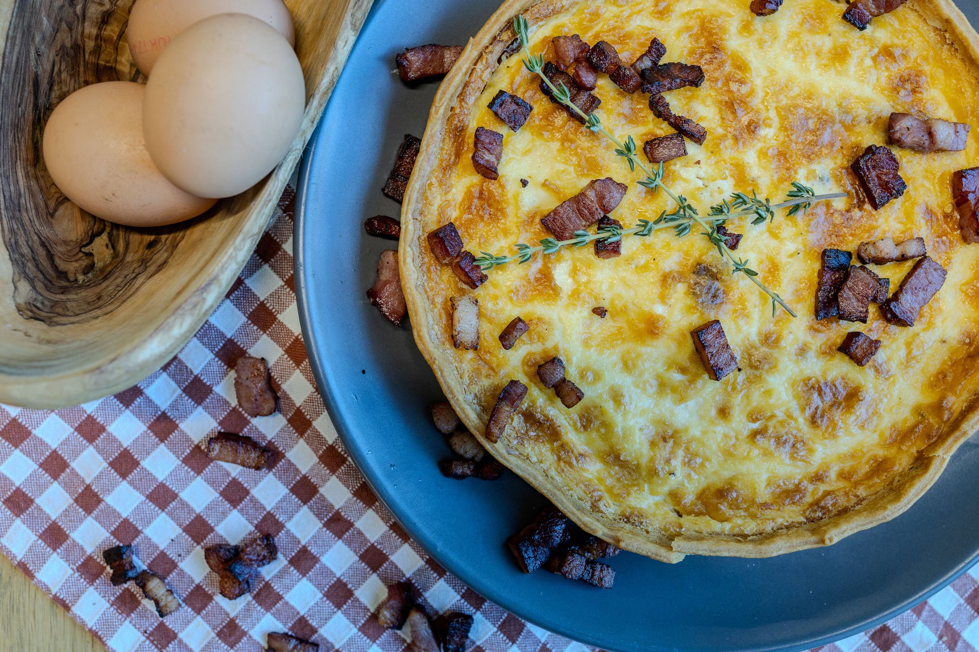 A French classic, made with crispy bacon, Gruyère cheese, and a silky egg custard filling, offering a perfect balance of savoury flavours. Our handmade quiches feature a buttery, flaky crust and a rich, creamy filling, making them a perfect choice for breakfast, brunch, or light meals.