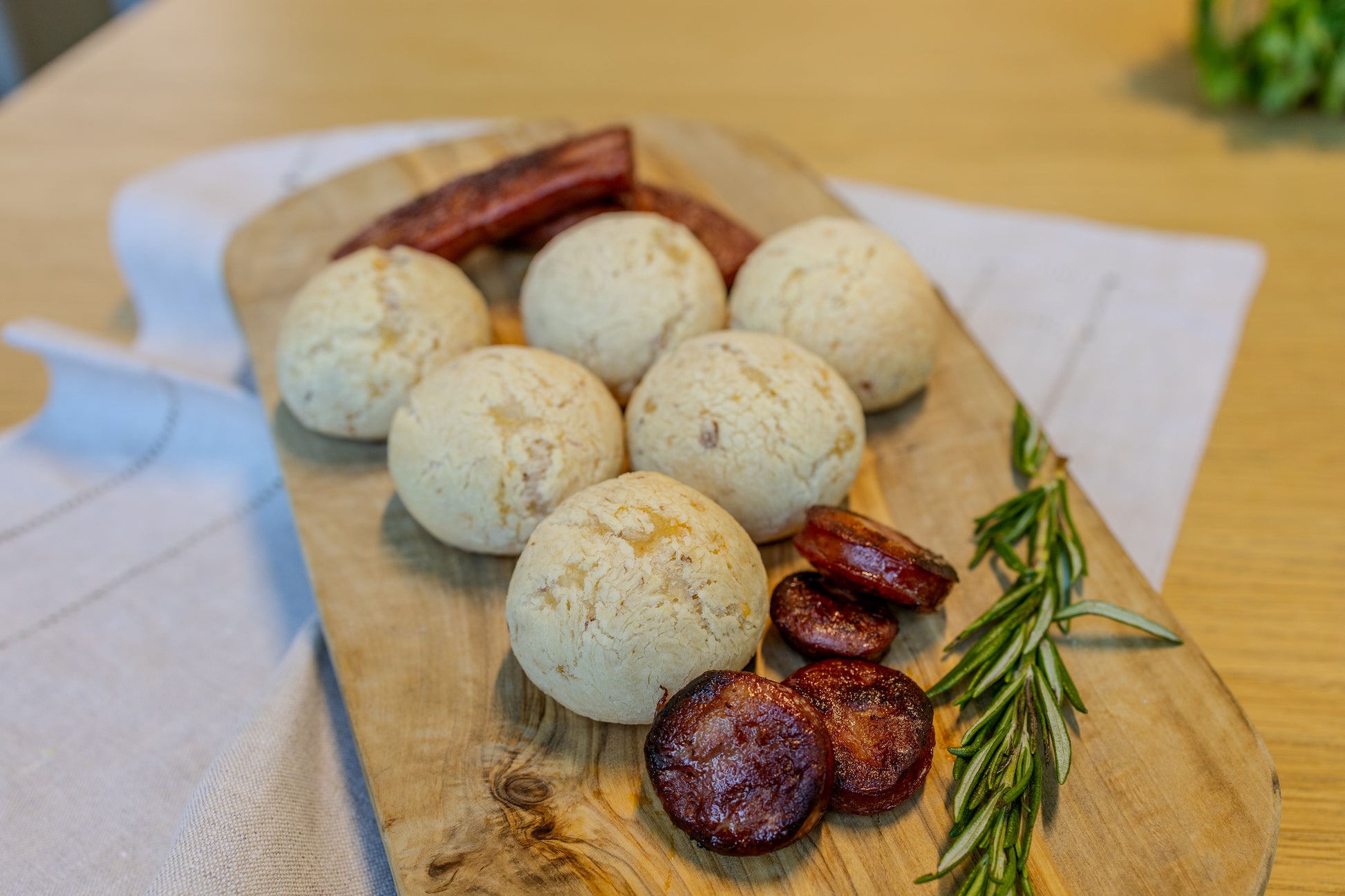 A bold and savoury variation, our Cheese Dough Balls with Calabrese Sausage are packed with high-quality, smoky, and flavourful sausage pieces. The combination of cheesy dough and a smoke meaty bite makes it a perfect snack, appetizer, or party food. (Gluten-free, contains pork).