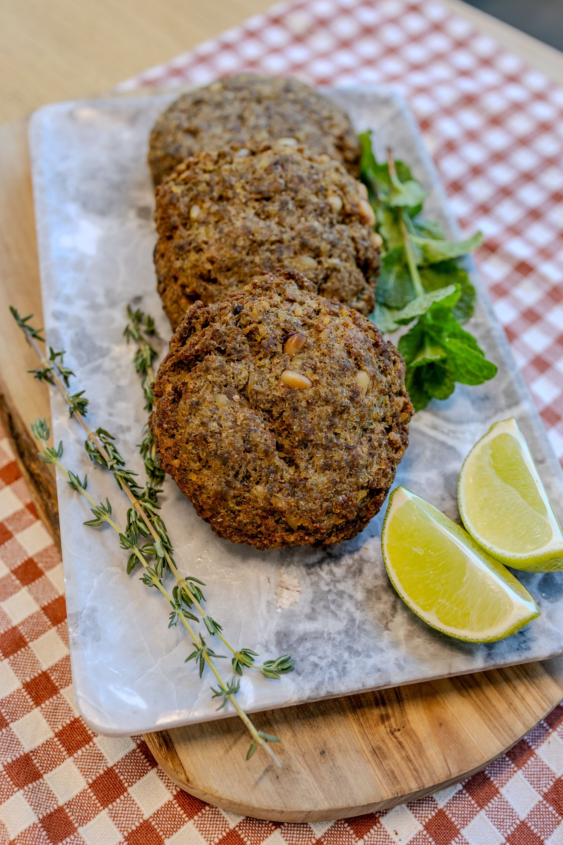 Beef, Water, Bulgur Wheat (Gluten), Shallots, Pine Nuts (Nuts) (3%), Seasoning Mix [Salt, Black Pepper, Cinnamon, Garlic, Mint], Extra Virgin Olive Oil